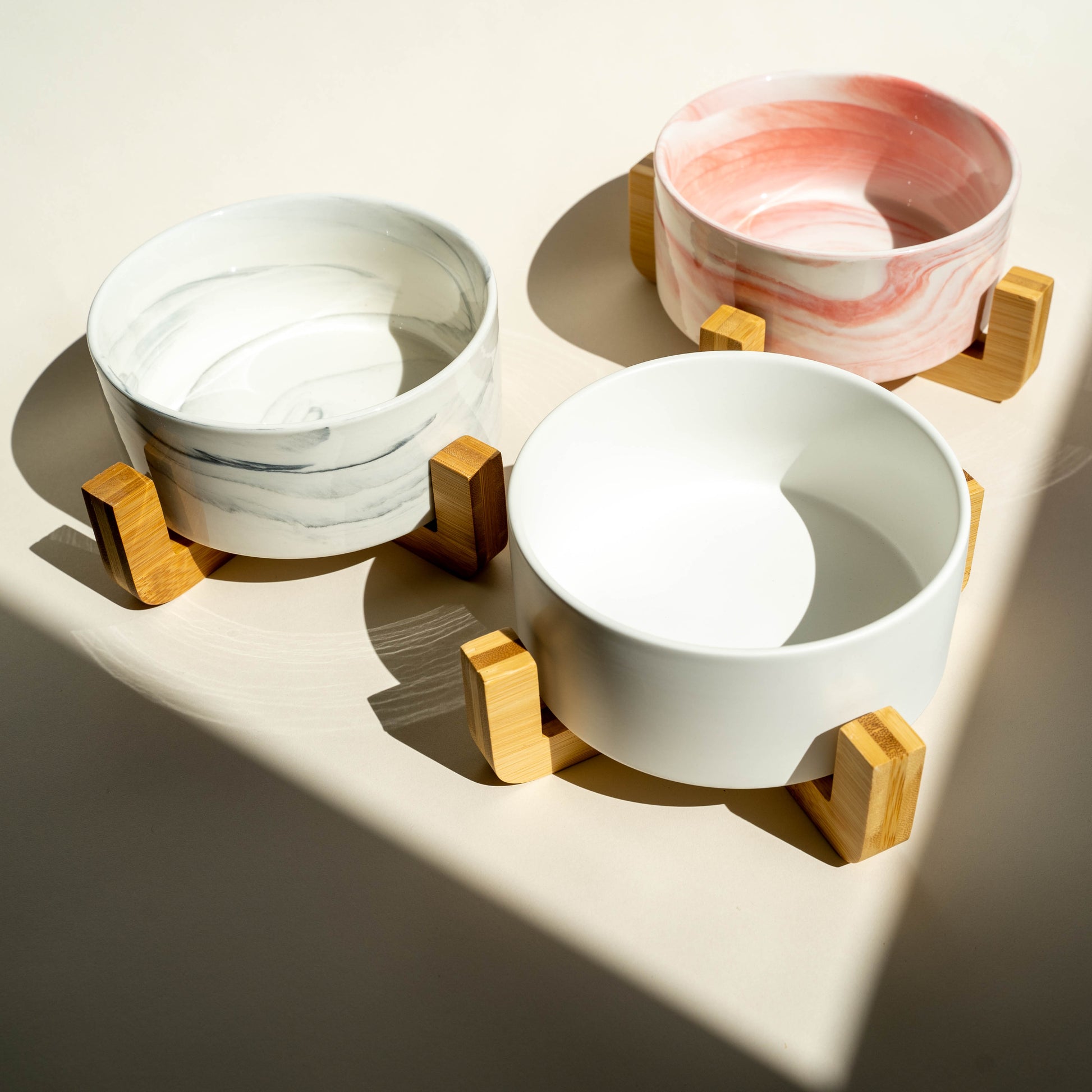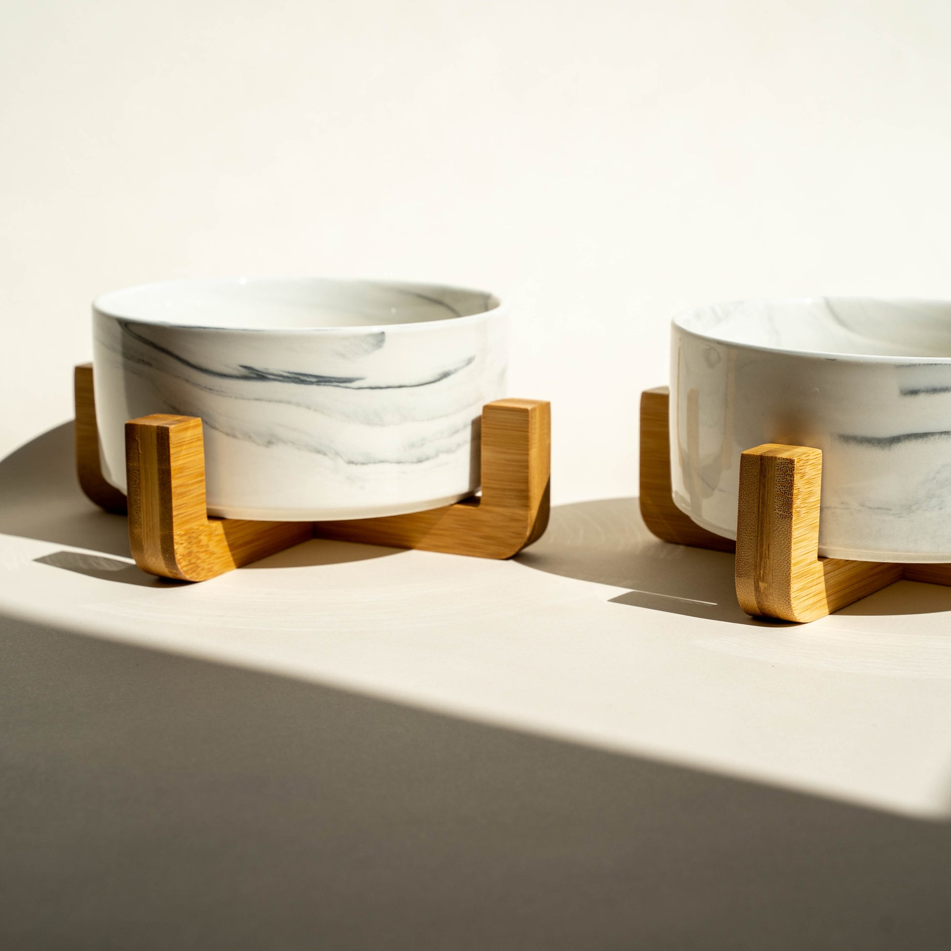 Elevate your pup's mealtime with the Mid-Century Modern Elevated Dog Bowl. The low bowl depth allows for easy eating, while the wood stand provides a more comfortable eating height for your pup.